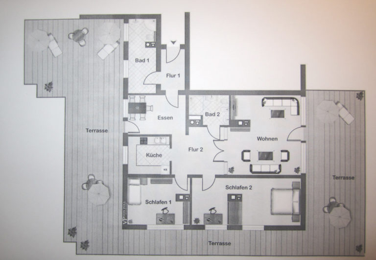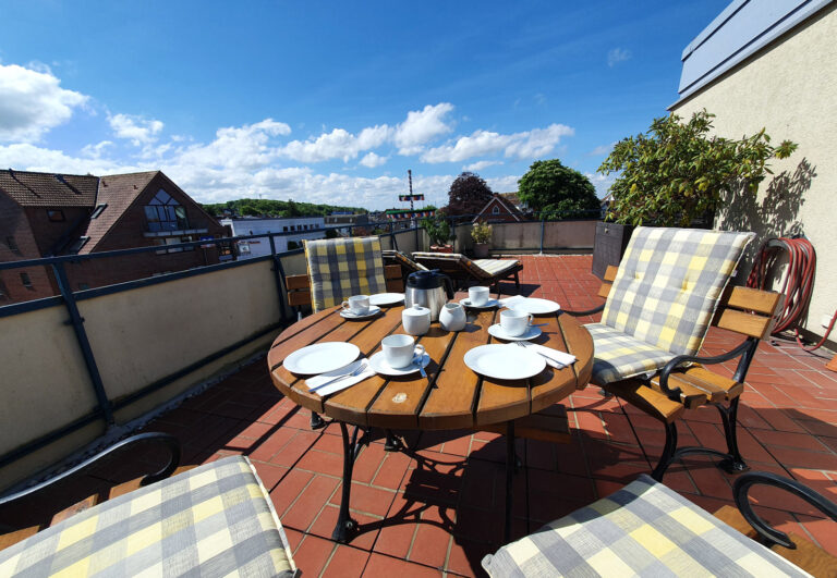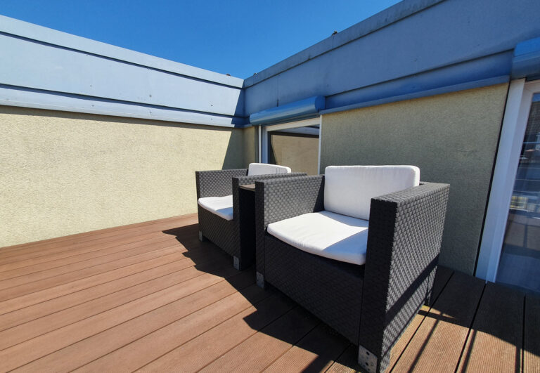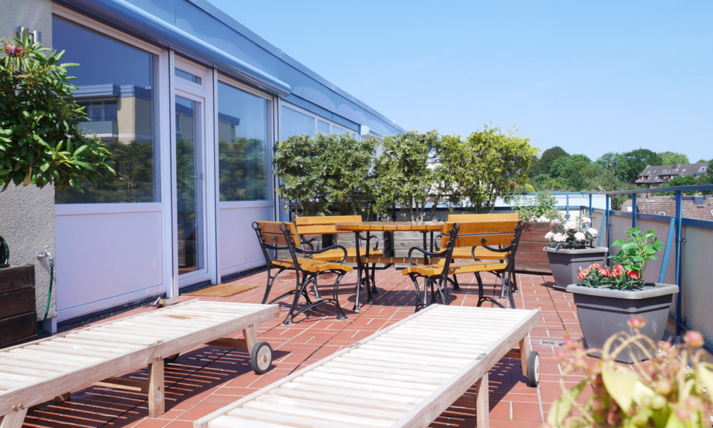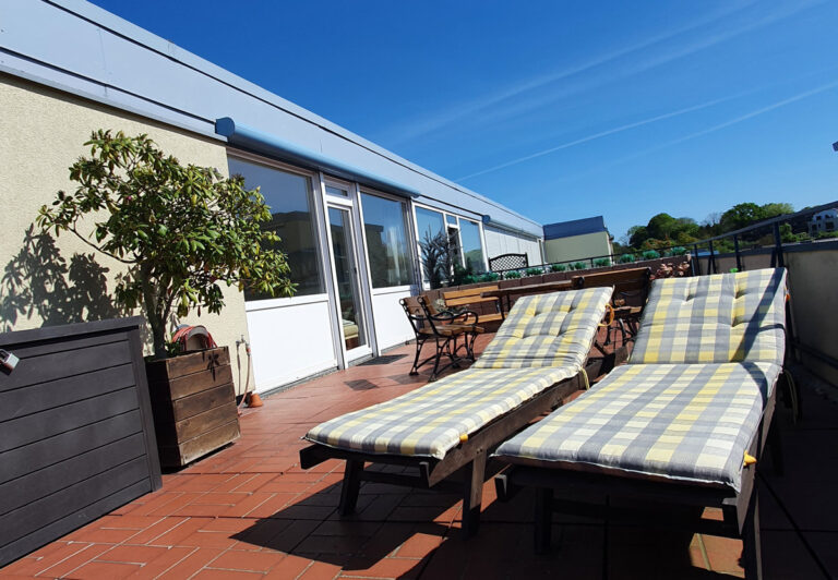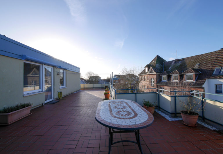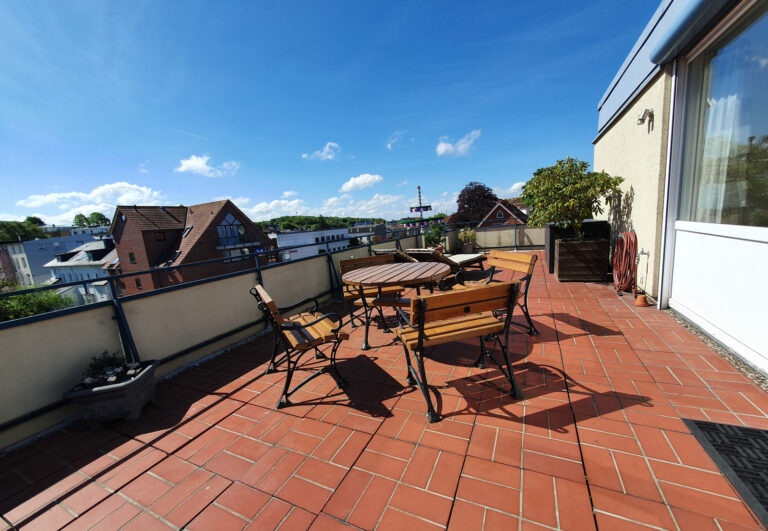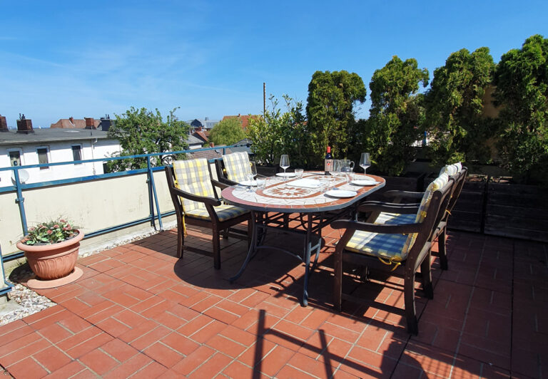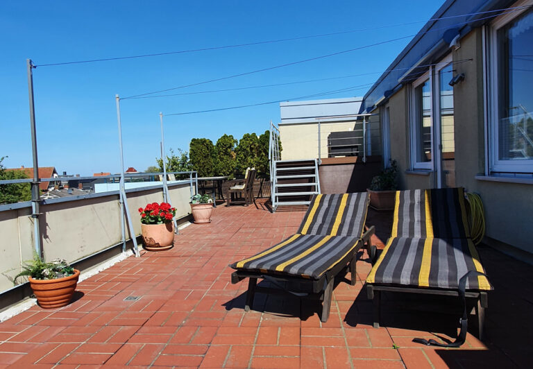 Die Wohnung bietet mit über 100 Quadratmetern und 145 Quadratmetern Dachterrasse einen gehobenen Urlaub für 1 bis 4 Personen.
