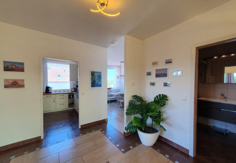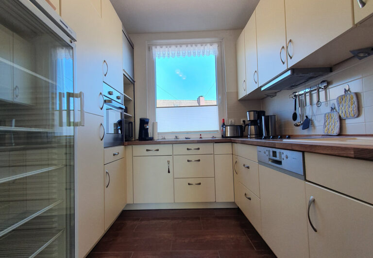 Innen lädt ein schönes Wohnzimmer zum Verweilen ein. Eine gut ausgestattete Küche mit großem Getränkekühlschrank liegt neben dem separaten Essbereich. Ihnen steht ein Schlafzimmer mit großem Boxspringbett und separatem Bereich mit Schreibtisch und ein Schlafzimmer mit 2 Einzelbetten, beide gut ausgestattet, zur Verfügung. Zu dem zentralen Badezimmer ist ein weiteres Badezimmer im hinteren Teil des Hauswirtschaftsraumes vorhanden. Im Hauswirtschaftsraum stehen Waschmaschine und Trockner für Sie bereit. Am Strand steht Ihnen unser Strandkorb bereits zur Verfügung.