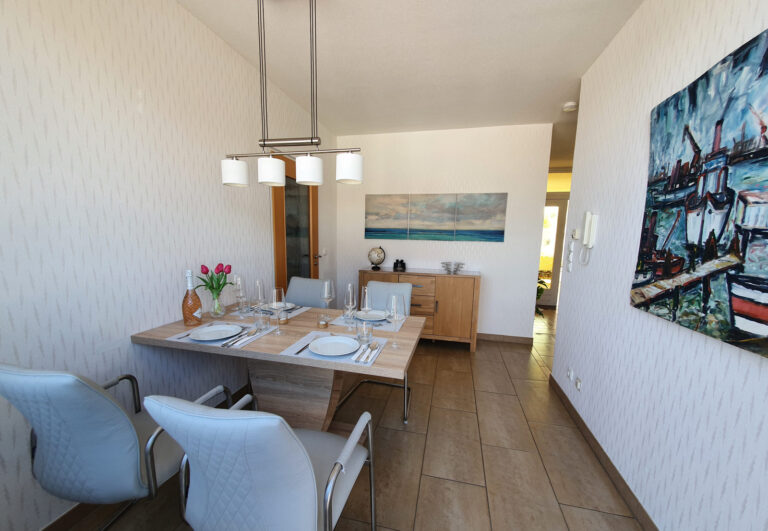 Dieses Penthouse wurde 2010 komplett saniert und wurde nun renoviert und neu eingerichtet. In der Wohnung sind Bilder und Fotos, die kleine Geschichten zeigen von Laboe, der Kieler Förde und der Ostsee. Wir freuen uns über nette Gäste, die dieses Ambiente zu schätzen wissen.